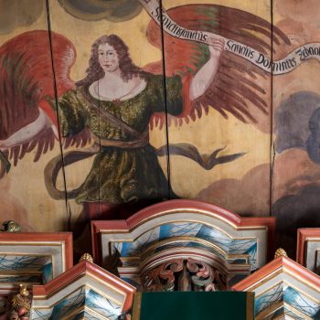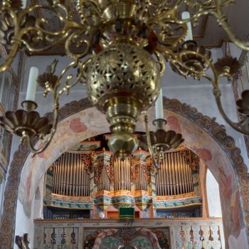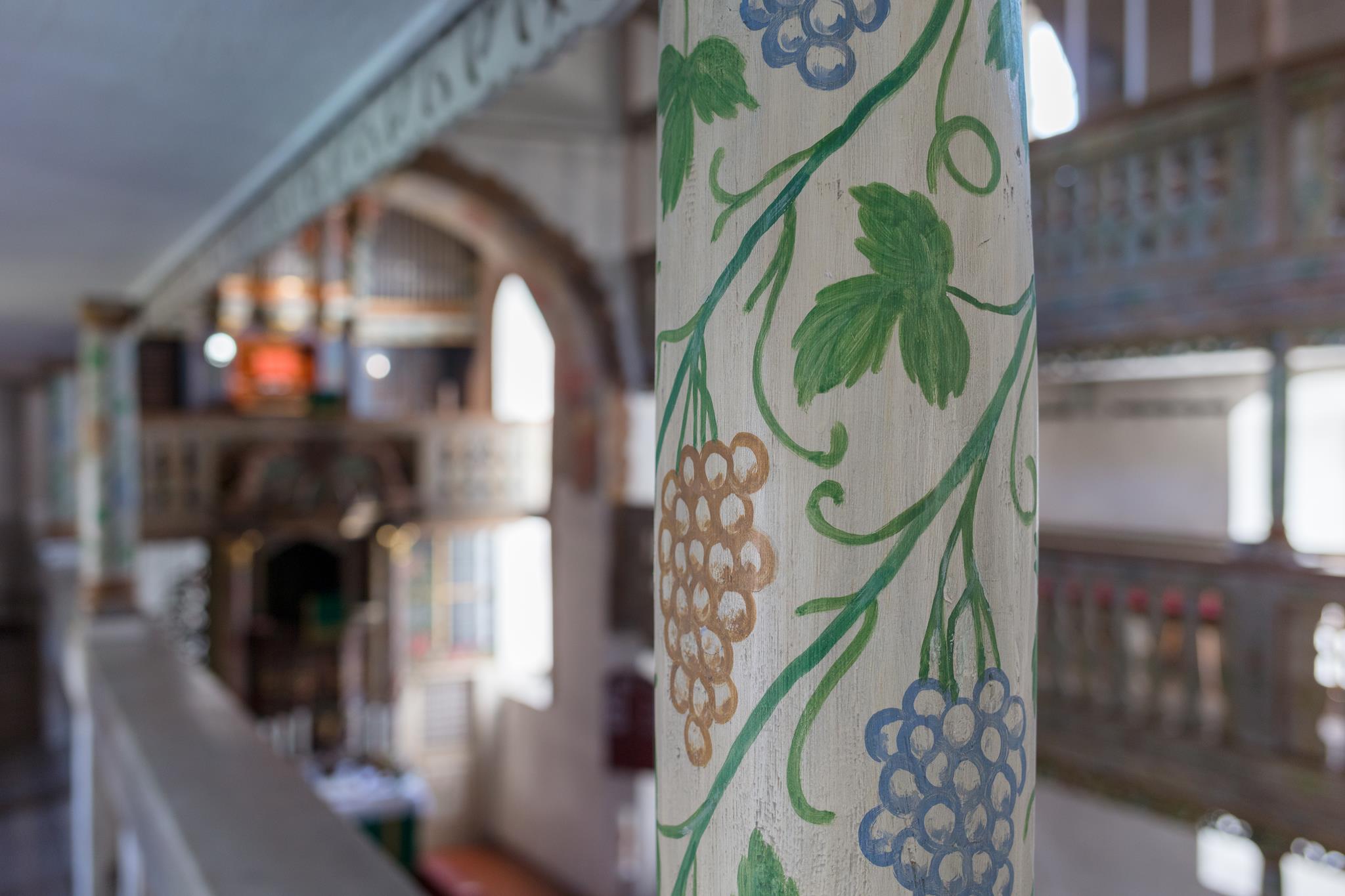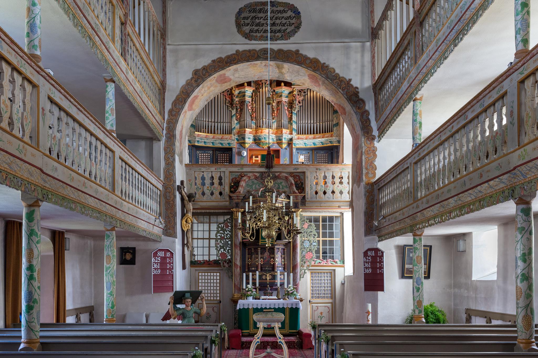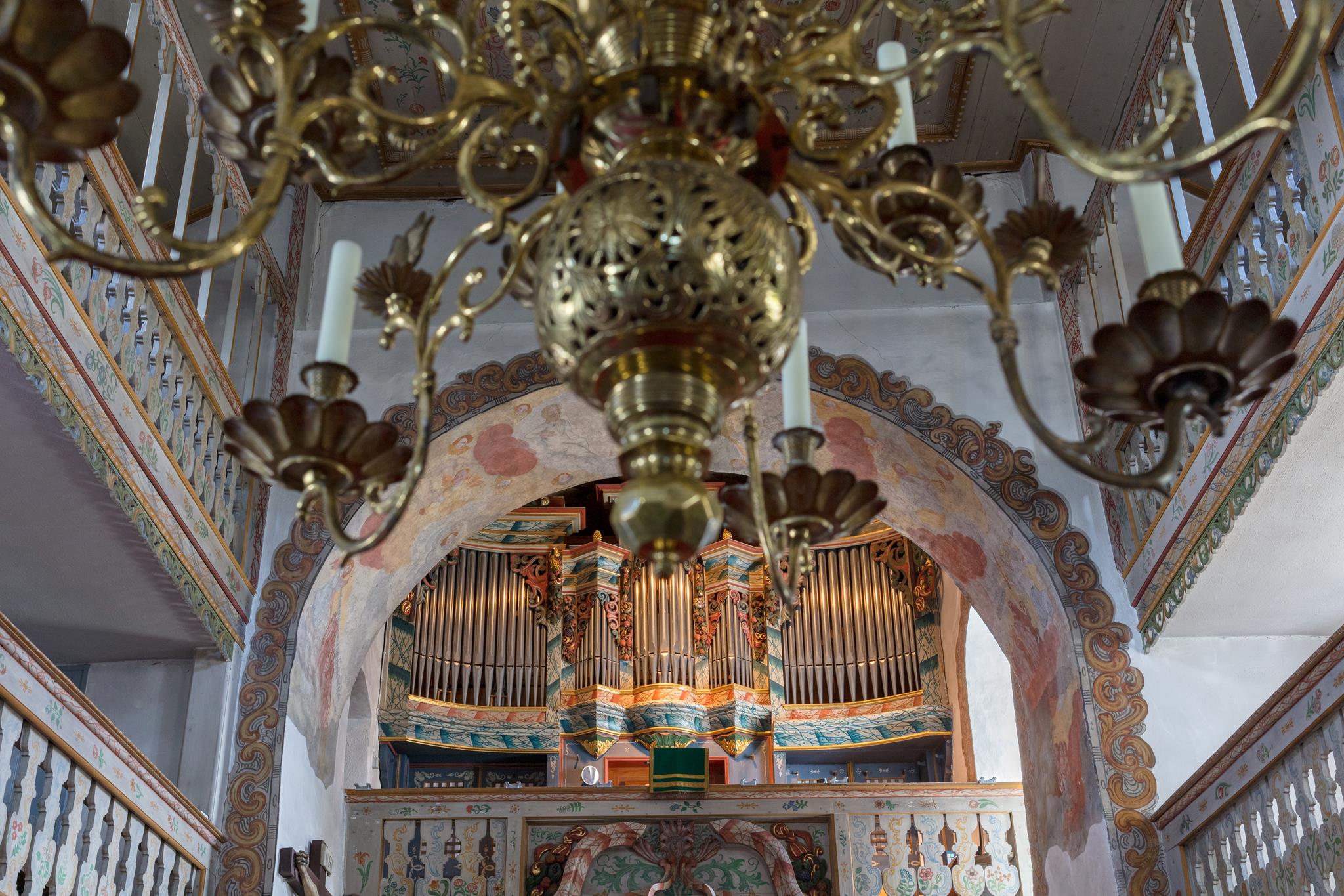 V roce 1909 byl kostel v tak žalostném stavu, že měl být zbourán. Ale místní farář a angažovaní členové sboru se postarali o to, aby byl zrenovován a vymalován v barokním stylu. Malby v chórových klenbách se dochovaly ze 17. století. Ukazují poslední soud a varují před věčným zatracením. Anděl nad varhanami pochází z doby, kdy byl kostel přestavěn na markrabský kostel (1739-1740). Svým zpěvem „Svatý, svatý, svatý“ a planoucím mečem zvěstuje Boží svatost. Za vysokým triumfálním obloukem je pozdně středověký presbytář uzavřen oltářem s vestavěnou kazatelnou, dveřmi, okny a varhanami. Presbytář je pod věží, v nejstarší části kostela. Ve středověku z něj příkopy, houští a zeď udělaly skutečný hrad.