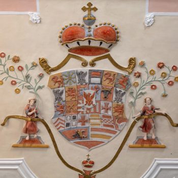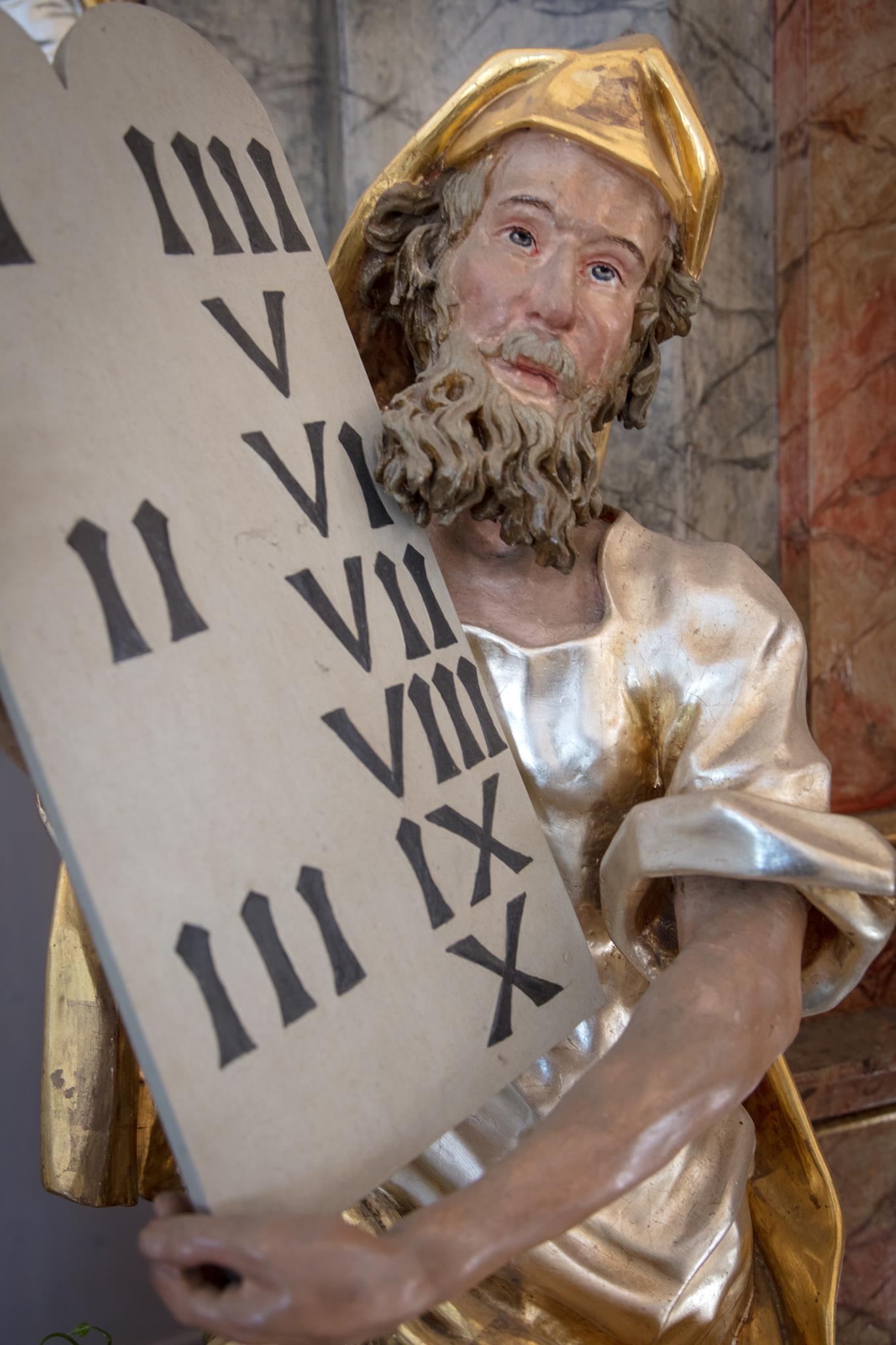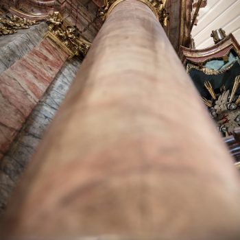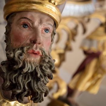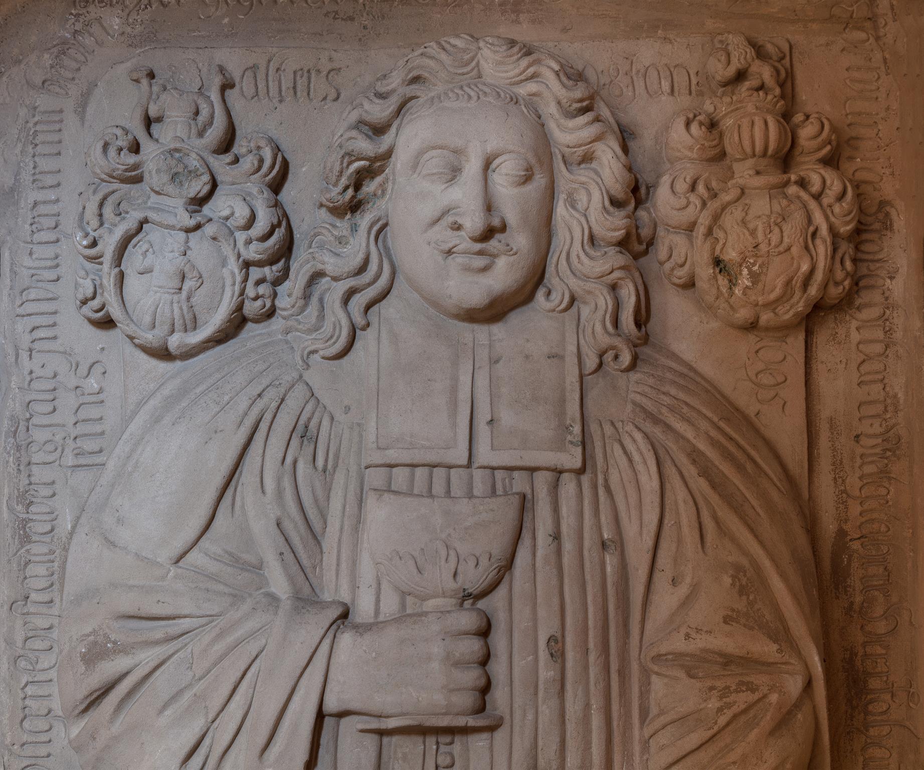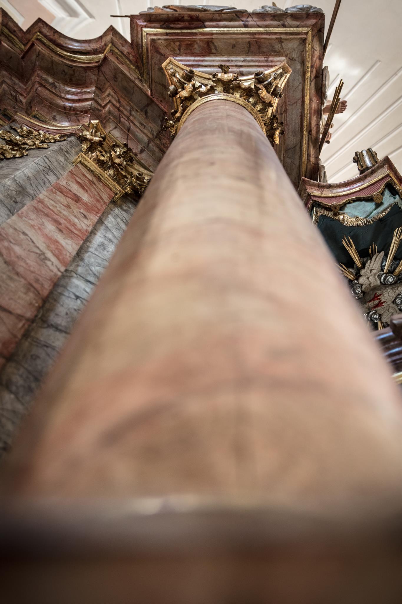 Kostel září z dálky nad údolím Bílého Mohanu. Dlouhé schodiště vede do bývalého hradního komplexu, ke kterému se lze dostat také po silnici. Poté, co panství přešlo r. 1687 od Wirsbergů na markraběte Christiana Ernsta, byl malý gotický sálový kostel přestavěn na velkolepý markrabský kostel. Jen tabule se dvanácti apoštoly na bočních stěnách, vytvořené kolem r. 1510, a několik postav svatých svědčí o vysokém stáří kostela, jehož počátky sahají daleko za první zmínku v r. 1303, možná až k prvnímu tisíciletí.