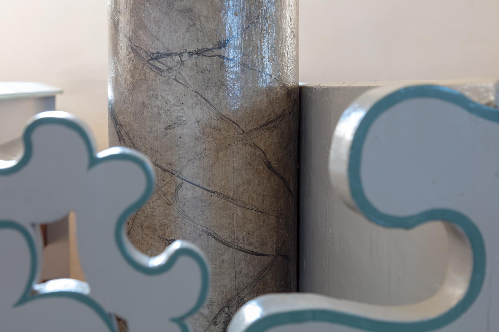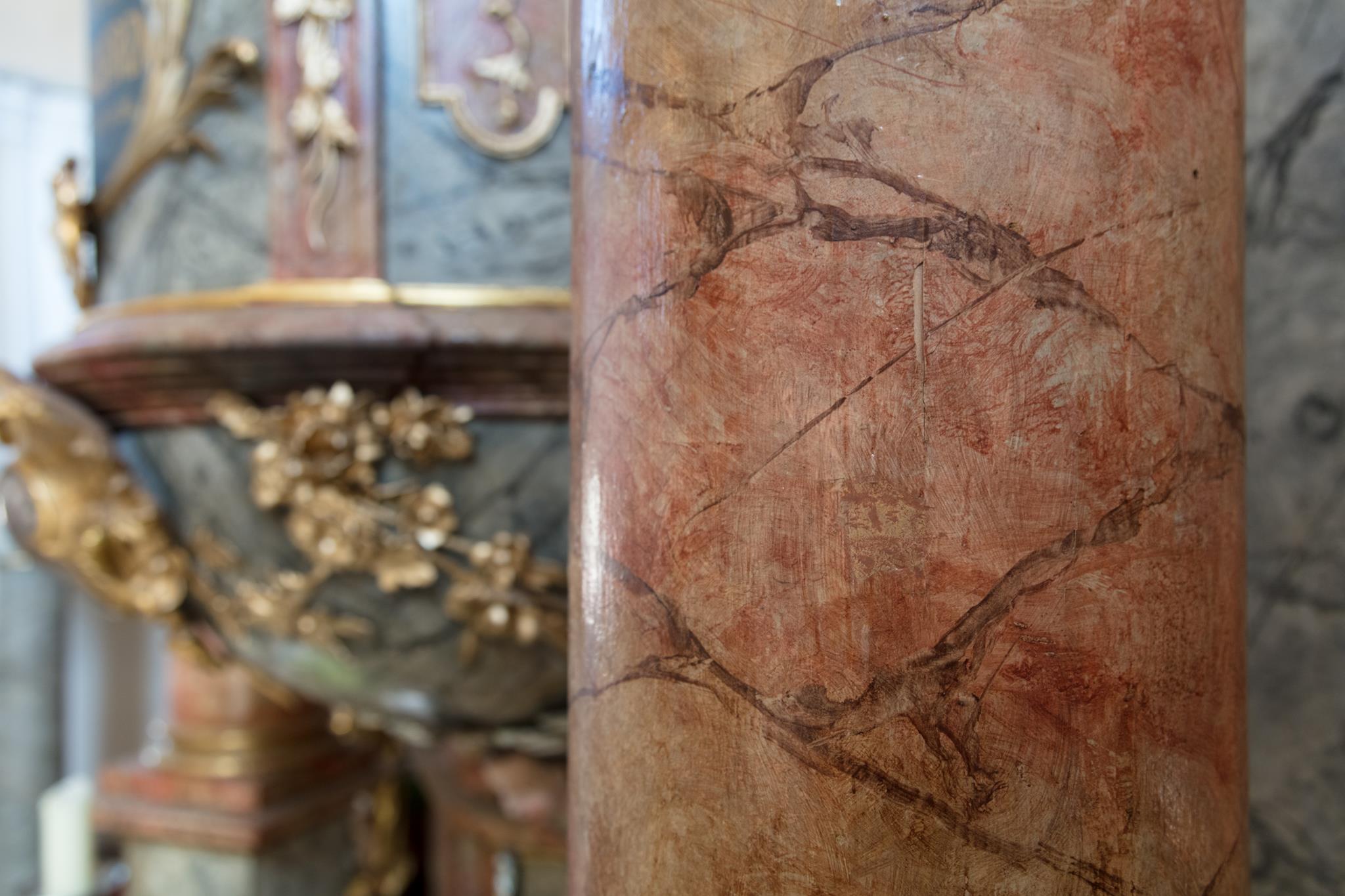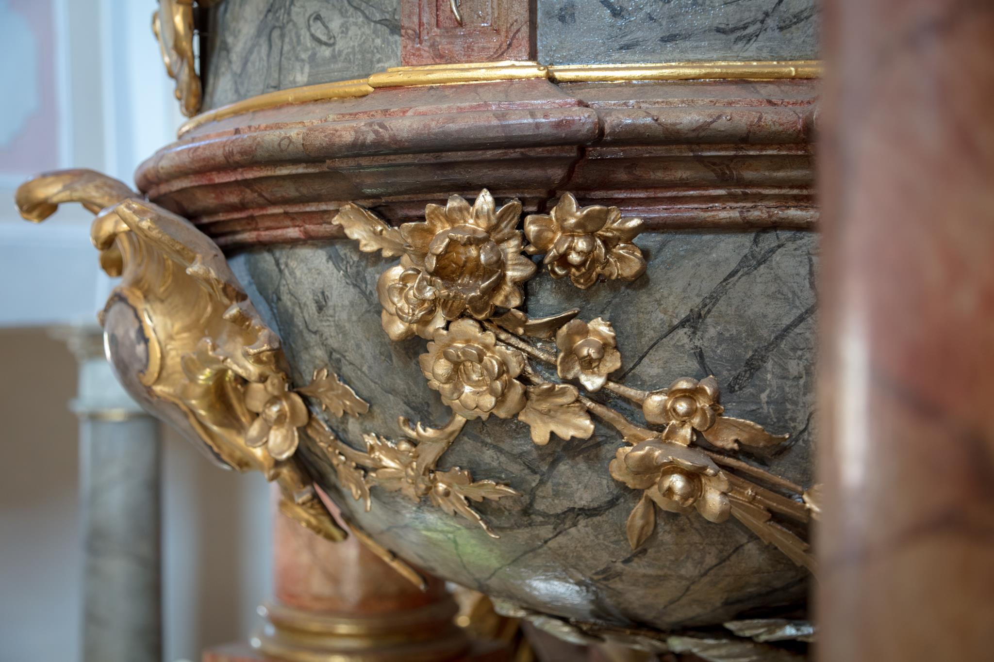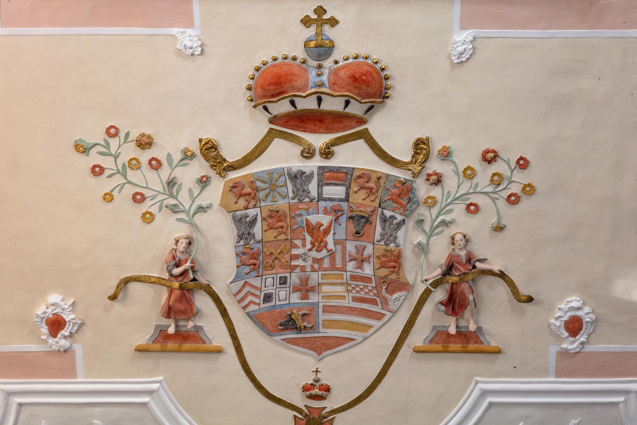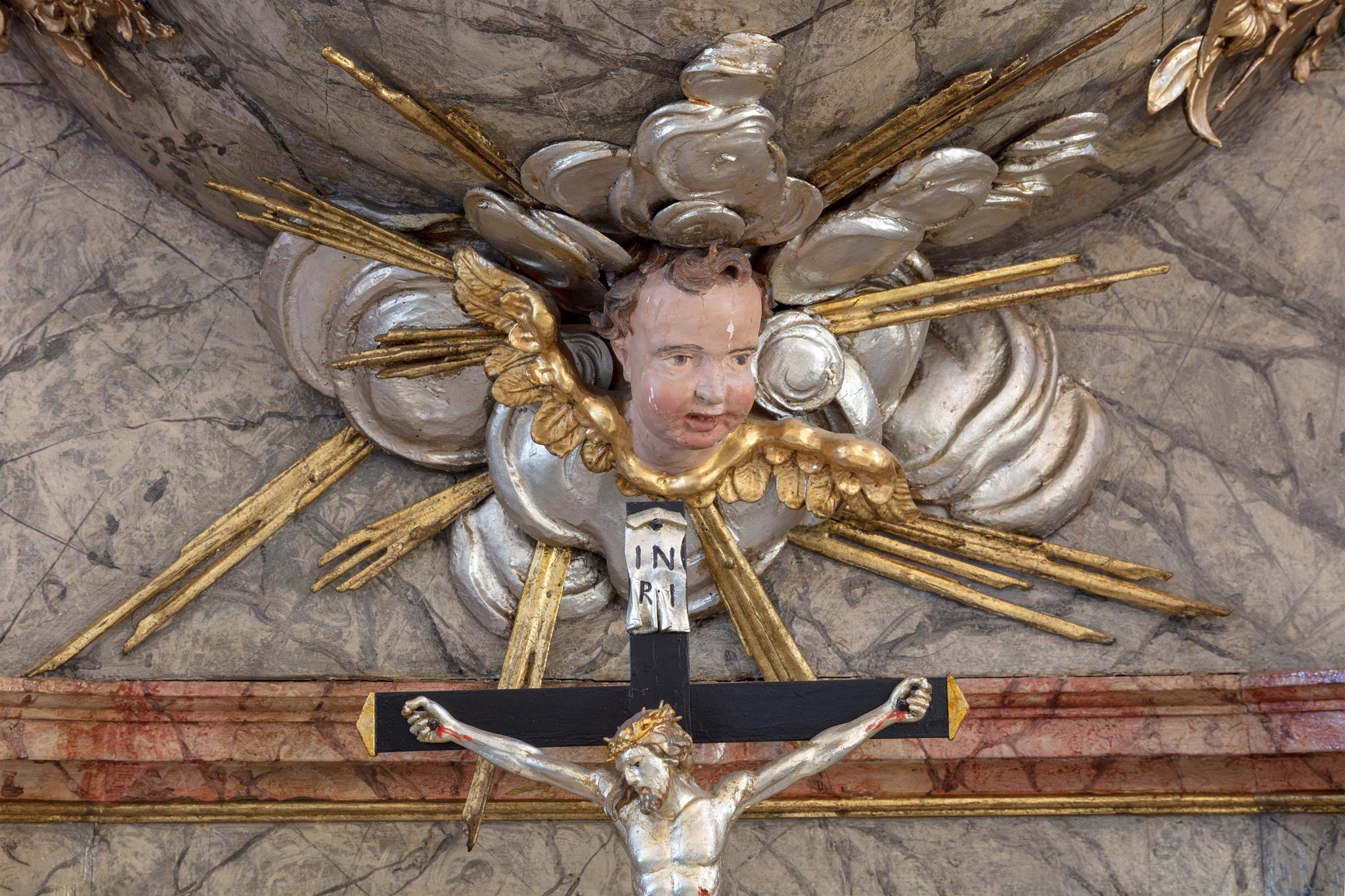 Díky velkým oknům a spoustě bílých a pastelových barev působí kostel světle a jasně. Na štukovém stropě, který je dílem Johanna Nikolause Feega, svítí svatozář s Božím okem v trojúhelníku hned třikrát, obklopená anděly s pestrými křídly a kvetoucími větvičkami, jeden má červené srdce. Andělé na varhanním kůru vyzývají: „Jásejte v Bohu!“ Mezi symboly slávy Boží nechal markrabě Friedrich umístit svá znamení: iniciálu „F“ a markrabský erb. Oltář s vestavěnou kazatelnou, na kterém je Mojžíš s Áronem a ukřižovaný a vzkříšený Kristus, vyřezal Johann Gabriel Räntz kolem r. 1750. Na křtitelnici jsou „naivním uměním“ zobrazeni kromě křtu Ježíšova také andělé s nástroji Kristova umučení.