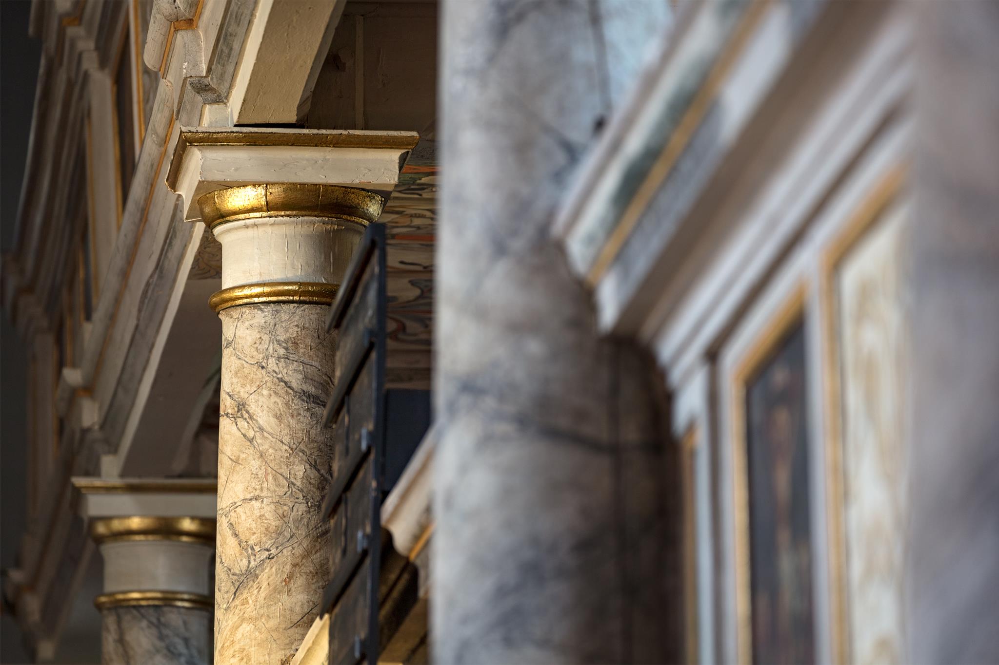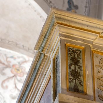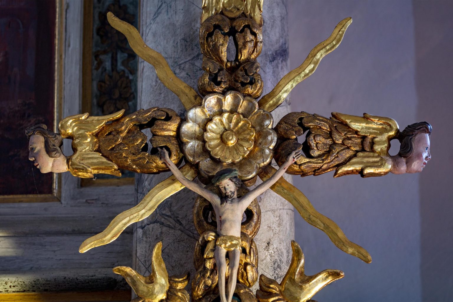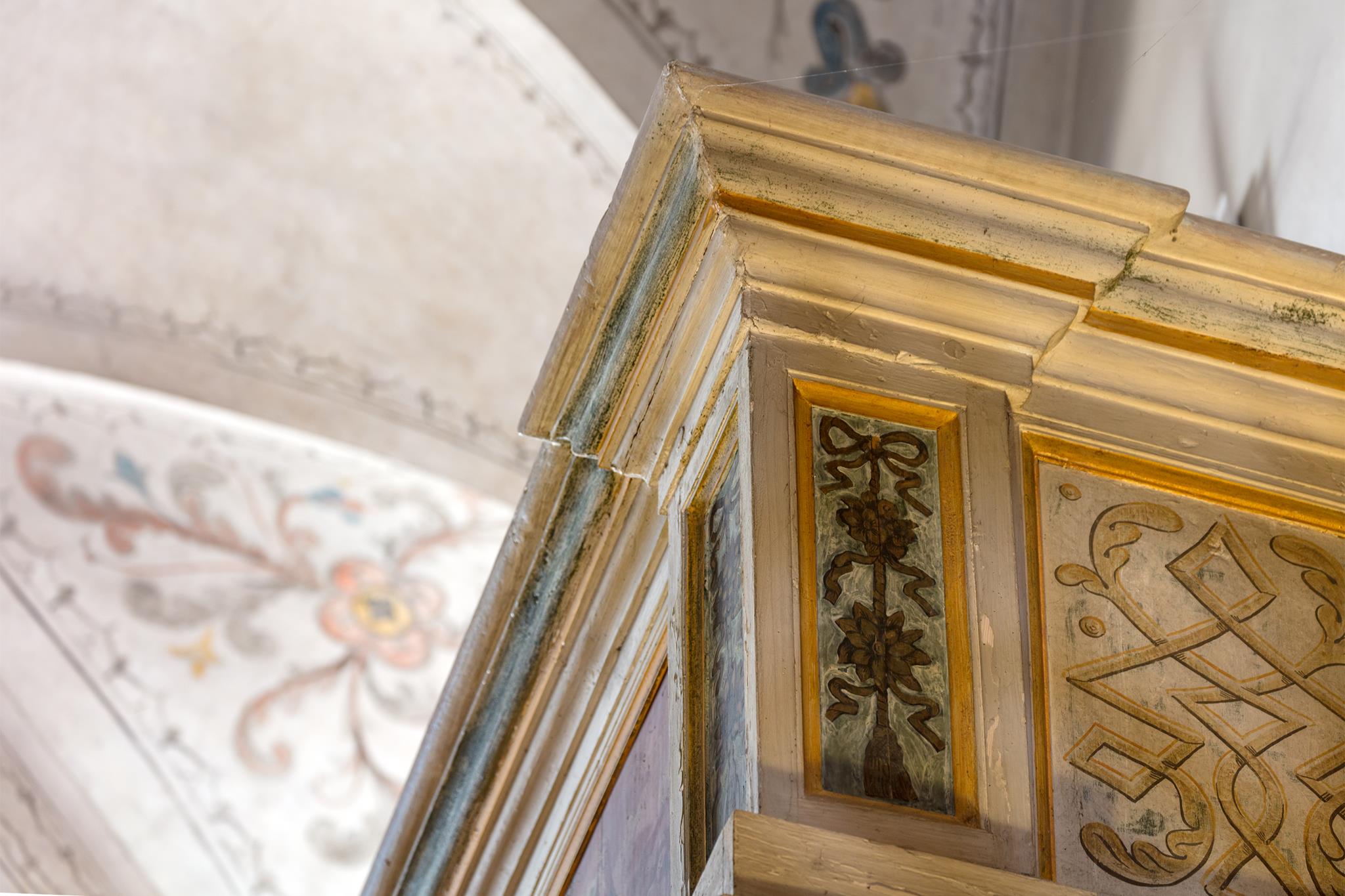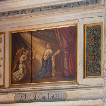 Často nelze přesně určit, kdy mnohé obrazy vznikly. Celý prostor kostela vypadá jako bohatě zdobená obrázková Bible. Některé obrazy pochází z r. 1497, kdy byl původní starší kostel rozšířen a zřízen pozdně gotický presbytář. Roku 1651 byly postaveny první galerie. Z nich zřejmě pochází malby na deskách, které byly nyní ořezány na podlahu druhé galerie. Stávající obrazy na galerii s mnoha biblickými scénami a nápisy byly namalovány teprve po instalaci nových dřevěných empor v presbytáři a v lodi v letech 1715, popř. 1729/30. Dokládají to letopočty u jmen dárců. Klenba byla barokně vymalována až v roce 1955 – s anděly zvěstujícími slávu Boží hudbou a s květinovou dekorací. Na stropě presbytáře uzavírá kruh svatá Trojice. Výsledkem je bohatě malovaný kostel s pozdně gotickou síťovou klenbou a s dvojitými barokními galeriemi, které se rozprostírají po třech stranách stěn presbytáře.