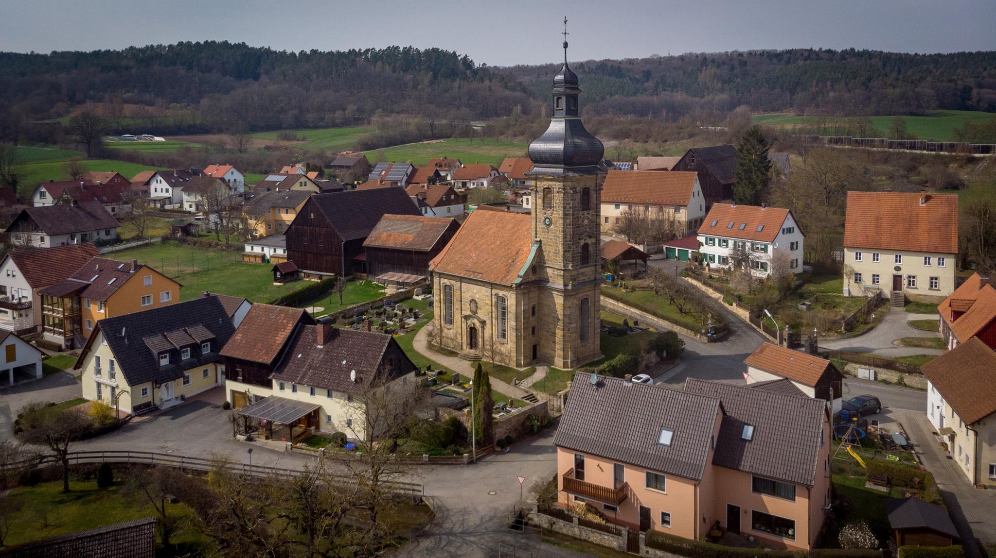 Název „Kostel míru“ svědčí o zvláštním příběhu: Když hrozilo nebezpečí sedmileté války, složil říšský hrabě von Giech přísahu, že pokud bude jeho země ušetřena, postaví nový kostel. Když se tak stalo, rohodl se obnovit nejhorší ze svých pěti kostelů. Stavbou nového kostela pověřil v r. 1764 stavebního mistra J. Th. Nißlera v Berndorfu. Na patronát svobodných říšských hrabat von Giechových ukazují iniciály nad varhanami, propracovaný erb na západní vnější stěně a labuť na kostelní věži. V nedaleké faře se narodil Carl von Linde, vynálezce zmrzlinového stroje.