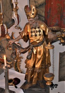 In margrave churches, Aaron and Moses stand on either side of the altar (as in the picture in Benk, or in Wonsees). Both are regarded as forerunners of Jesus Christ and point forward to Him. In the New Testament, especially in the letter to the Hebrews, He is described as the High Priest of the New Covenant. He is the bridge-builder, the mediator between God and man. All human mediators have been discharged. Since He gave His life on the Cross, no other sacrifice is necessary.