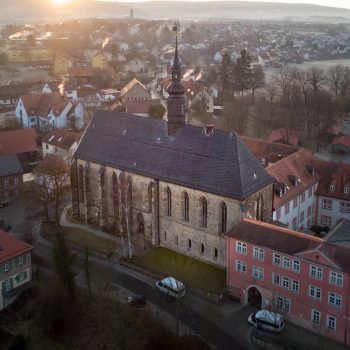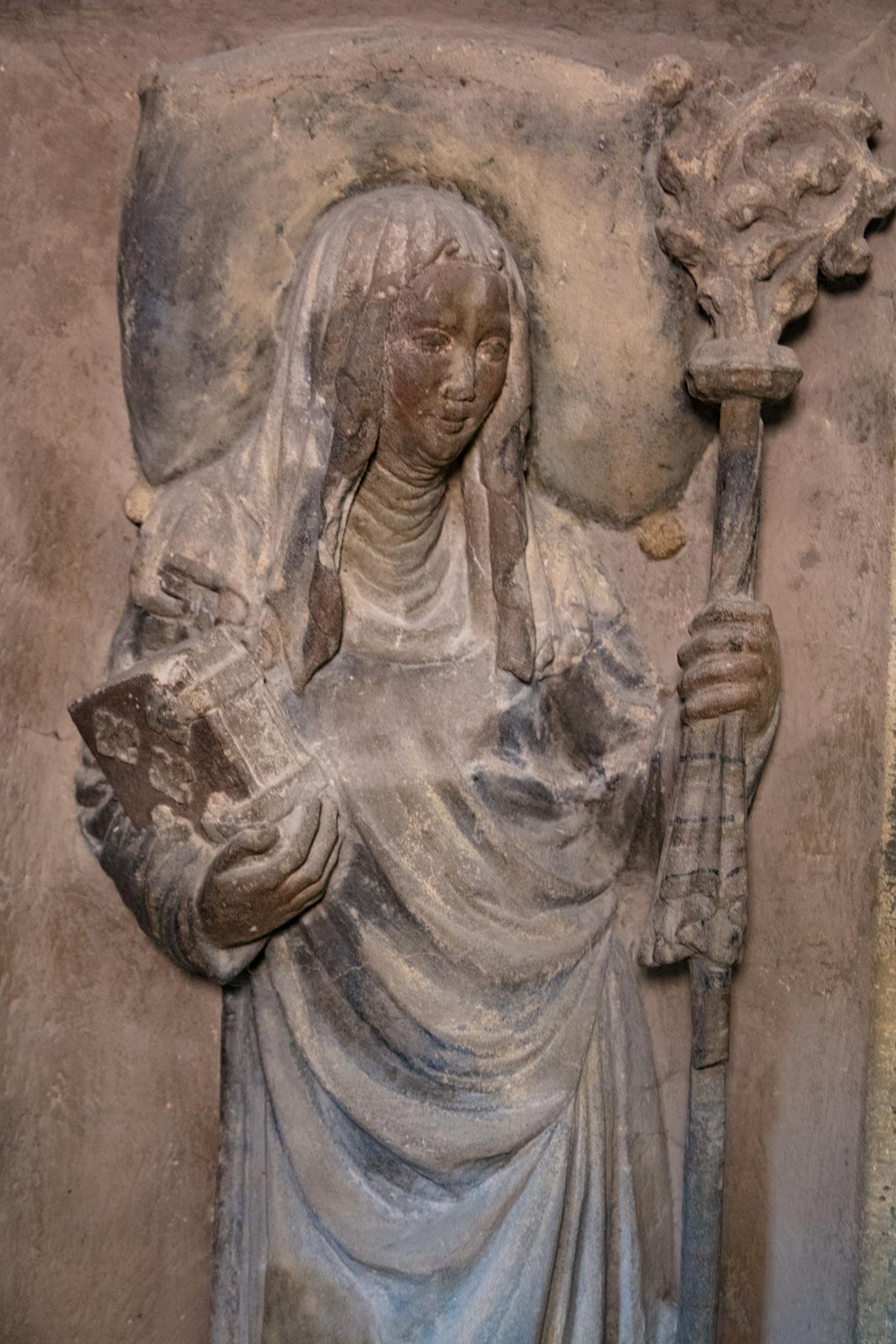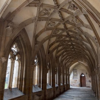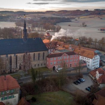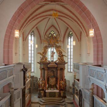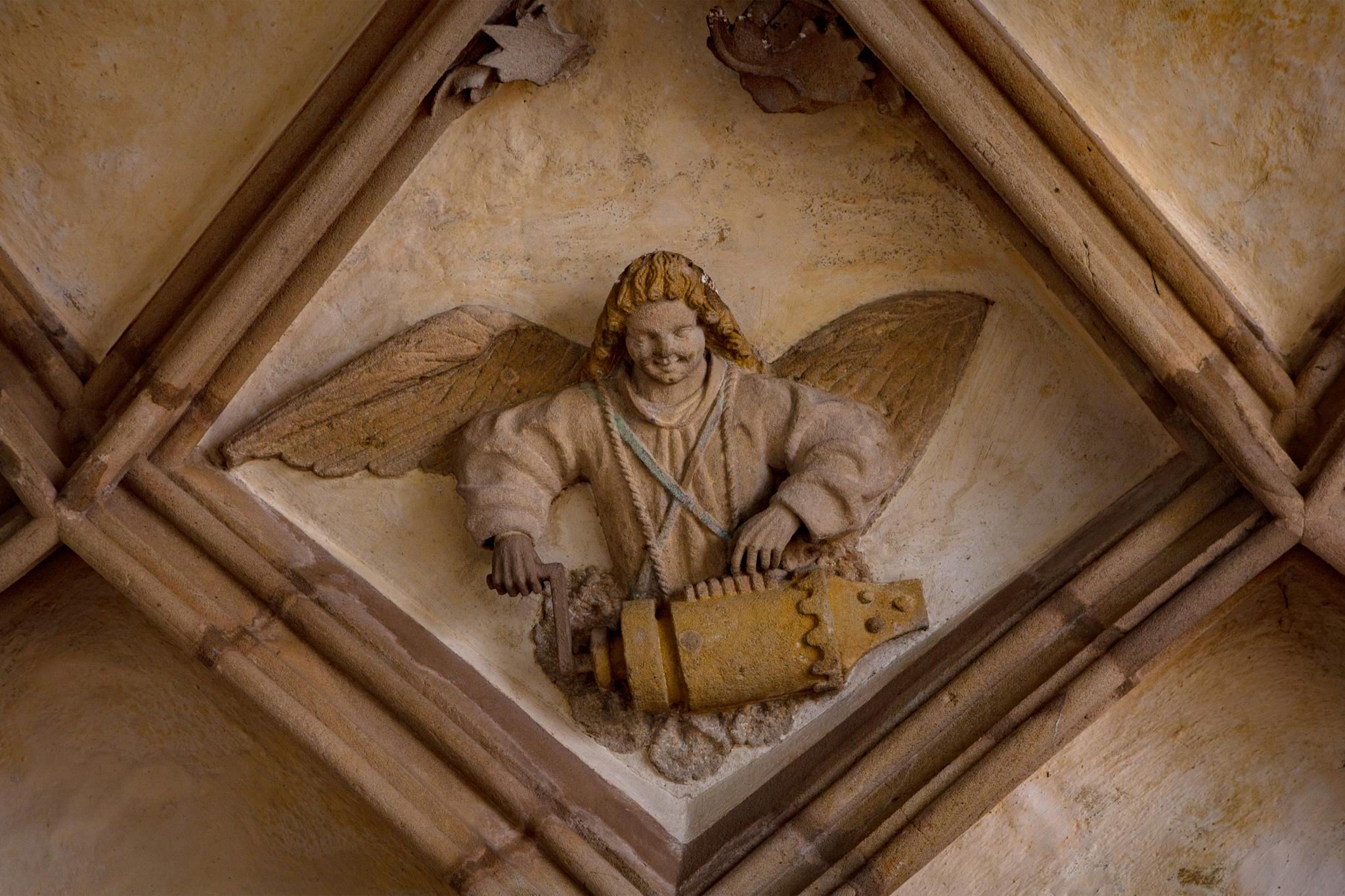 In the cloisters, angels playing on traditional instruments tell the story of the former convent church in gothic works of art, intricately carved from sandstone. The abbess of the Cistercian nunnery, Elisabeth von Künßberg, had this masterpiece built in 1473. Her gravestone is to be found in the church amongst the many slabs there, some of them very valuable and artistic.