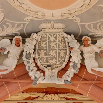 In the convent church museum in the former nuns‘ choir, there are late medieval works of art, an embroidered wall hanging of 1621 which belonged to Margrave Christian, and the processional cross used at the burial of Georg Friedrich Karl. It was his son Friedrich who had the cloisters demolished when he converted the nunnery into a hunting lodge – all except for the wing with the angel musicians.