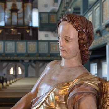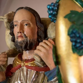 At the highest point of the motorway between Munich and Berlin, and visible from far away, lies the church of St James. Its tower rises up right next to that of the town hall. Pilgrims walking the Way of St James find the saint on the right side of the altar. The baptismal angel holds his symbol, the scallop shell, in his hand. With baptism, the pilgrim’s way through life begins, at the end of which is the great destination: resurrection and eternal life.