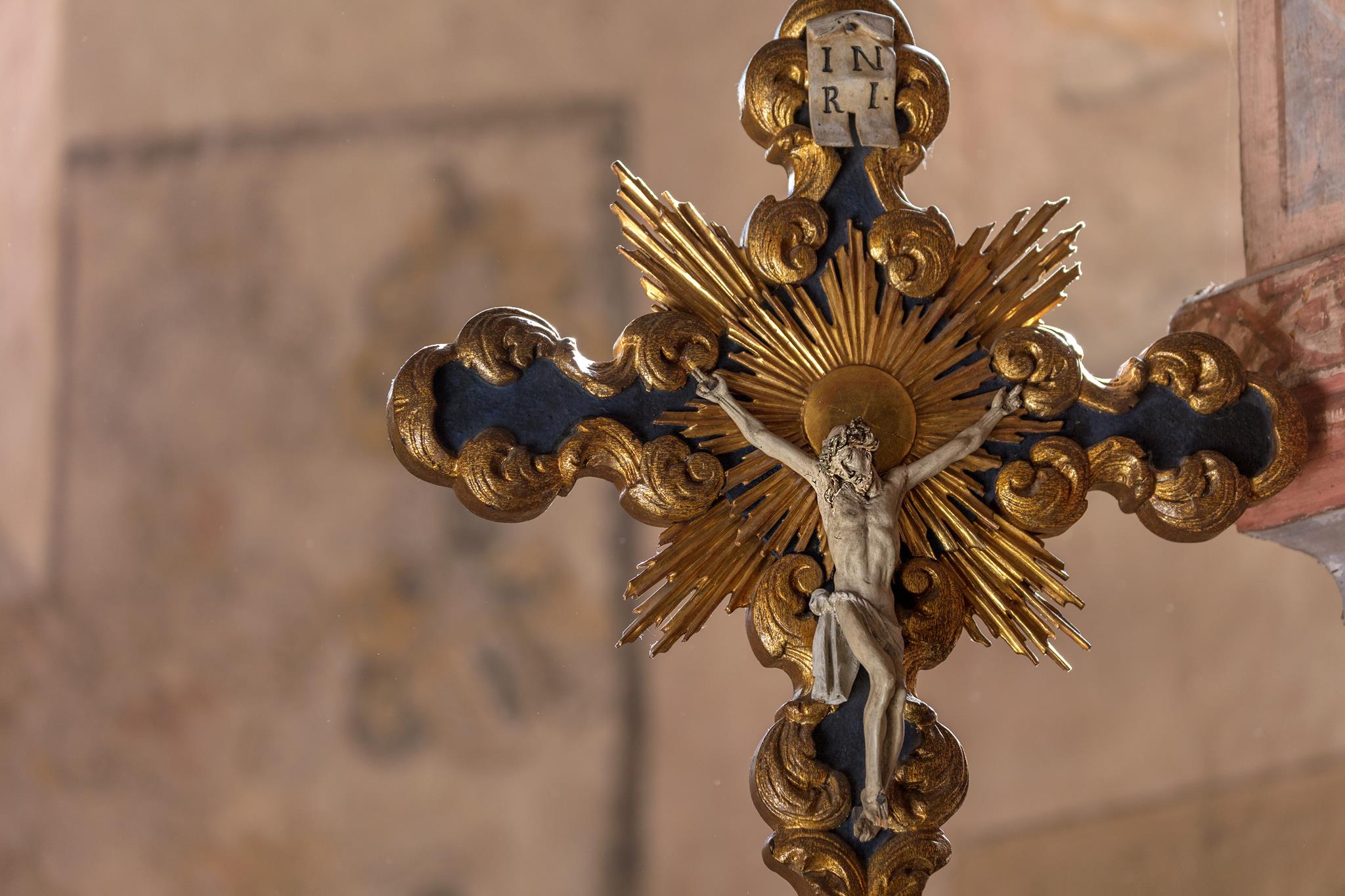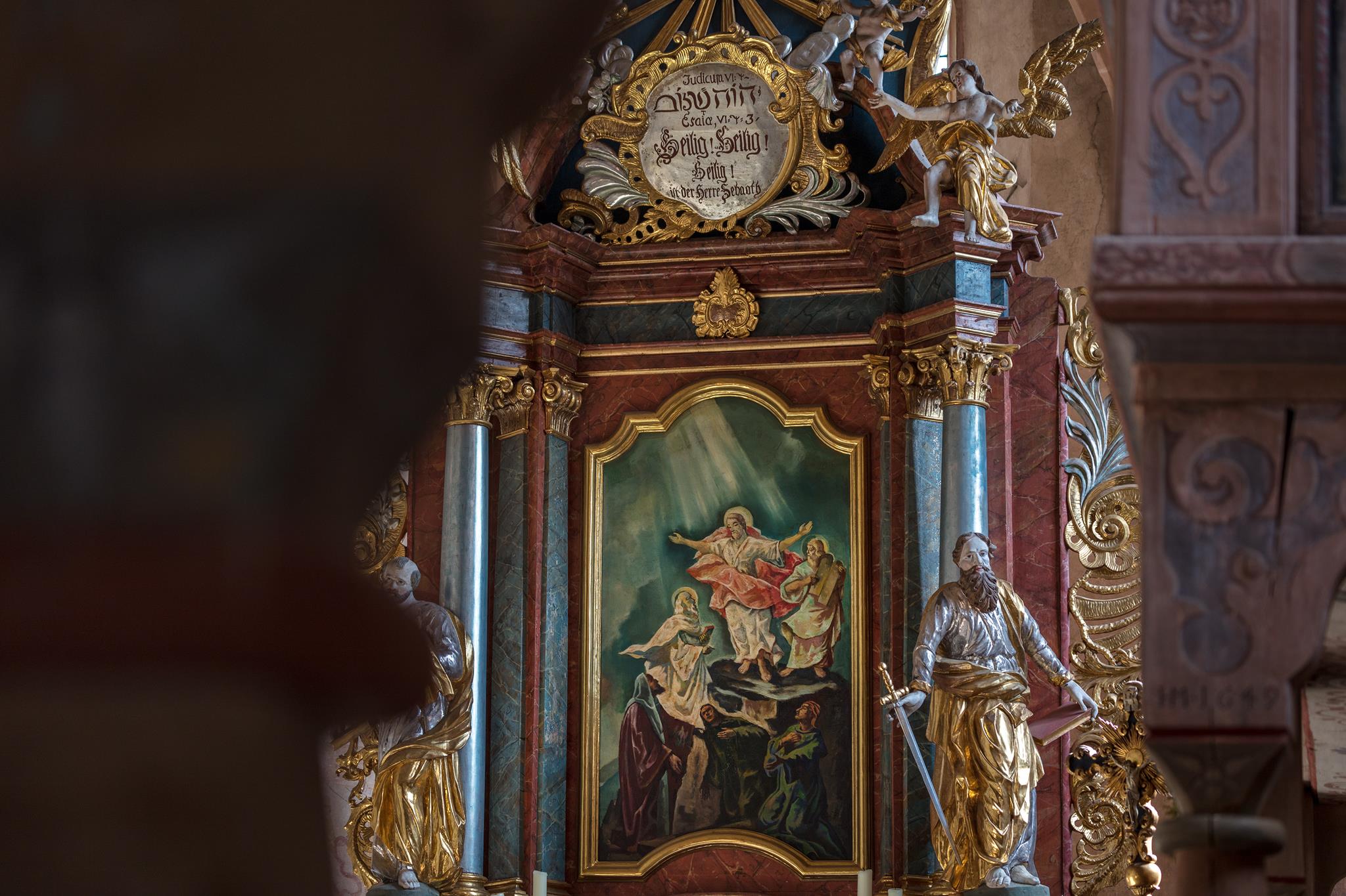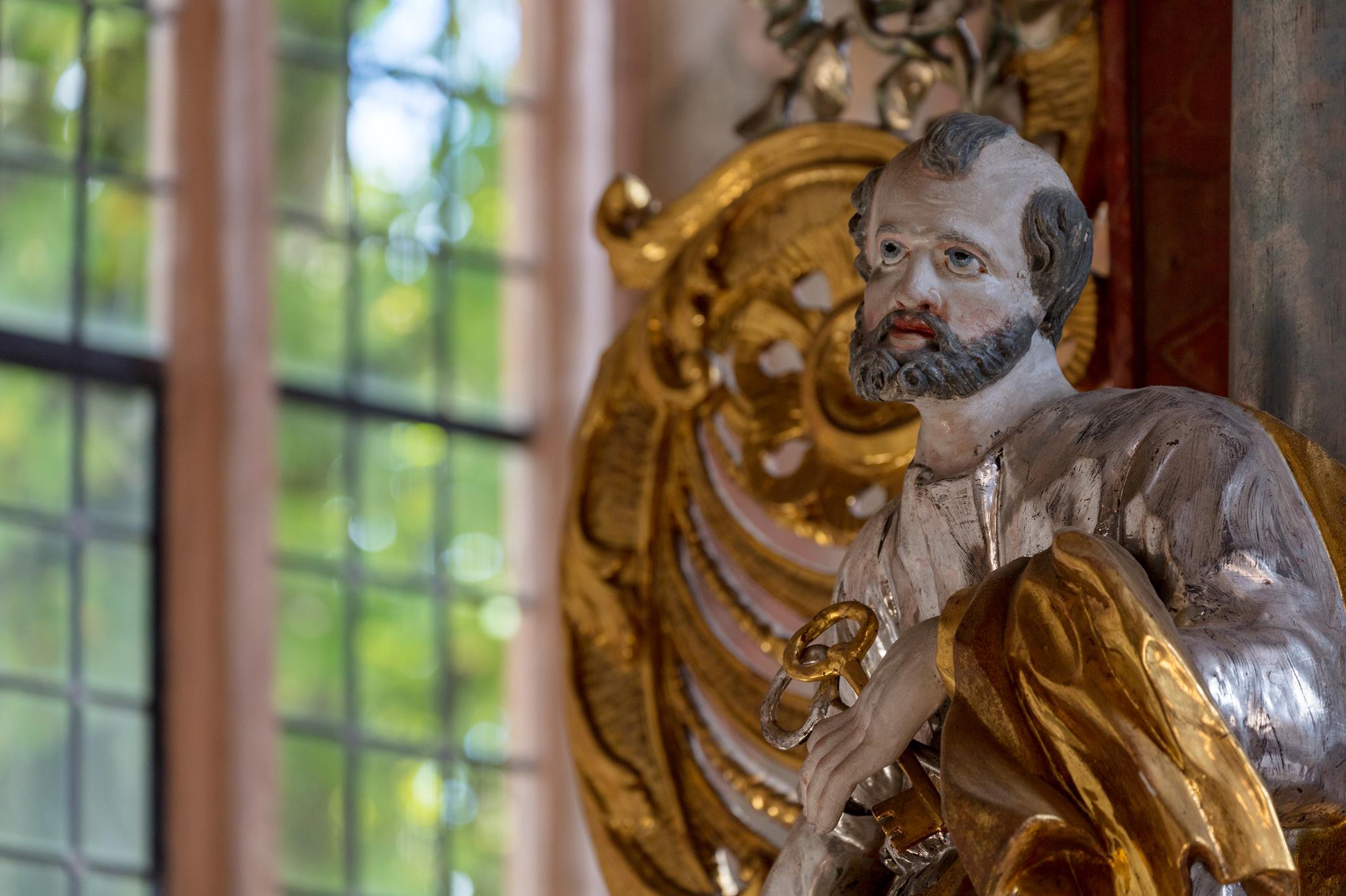 In the centre of the altar, made by Johann Mattäus Müller from Stadtsteinach, is the message of peace. Hebrew letters proclaim ‘Jahwe Schalom’ – God of Peace. The Risen Christ, of whom the Bible says: ‘He is our peace’, crowns the altar. The baptismal angel invites us in with a smile, and the kindergarten children have a playground in front of the church.