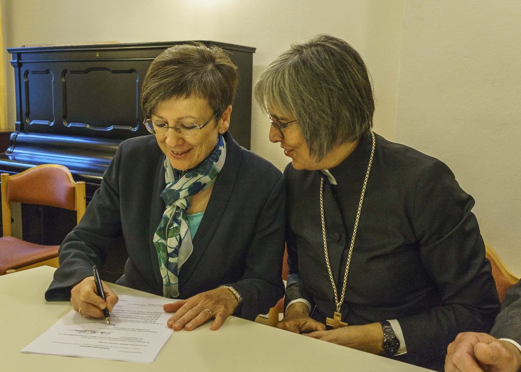 Regionalbischöfin Dr. Dorothea Greiner und Regierungspräsidentin Heidrun Piwernetz bei der Gründungsversammlung des Markgrafenkirchen e.V. am 17.05.2017