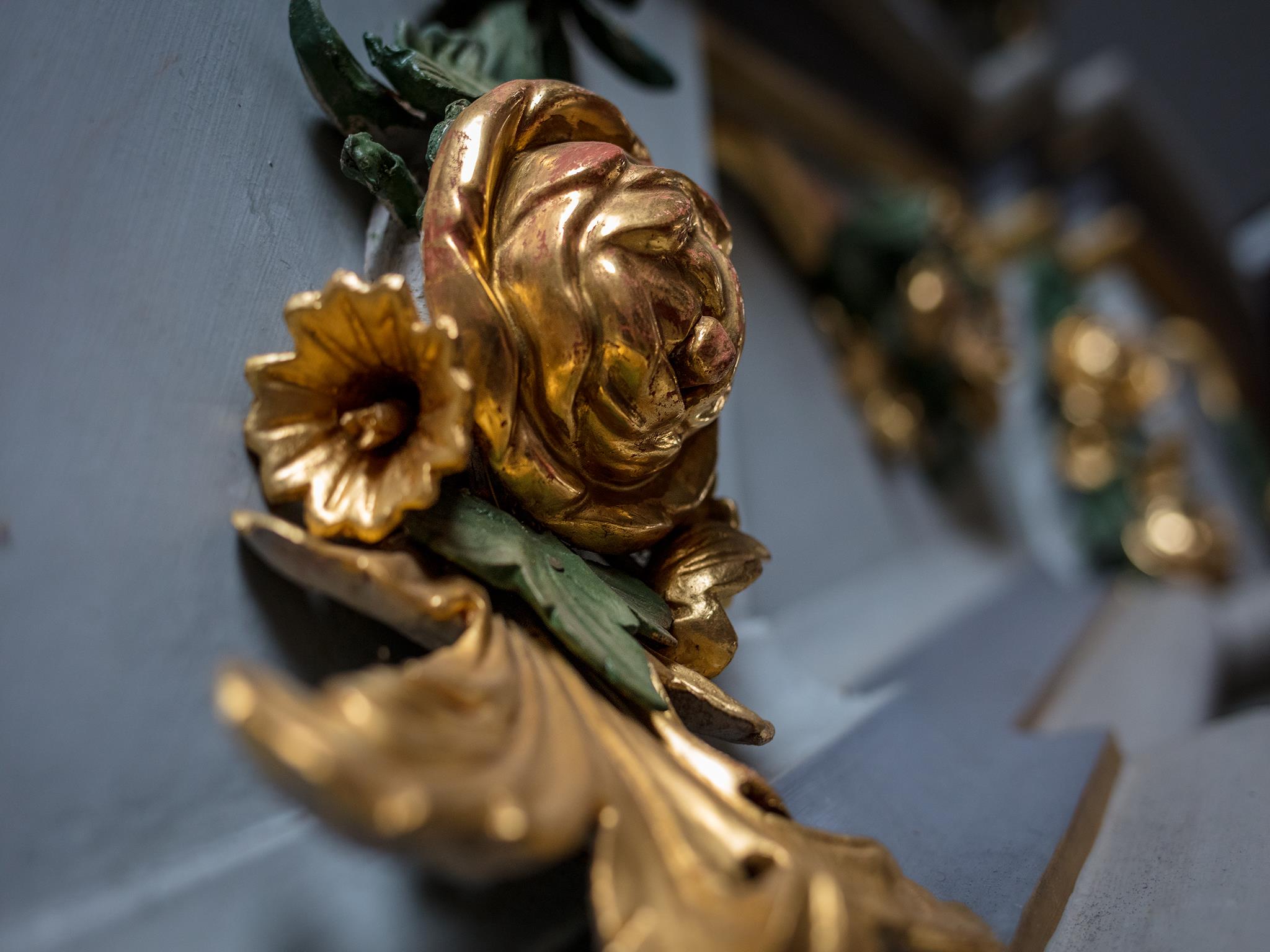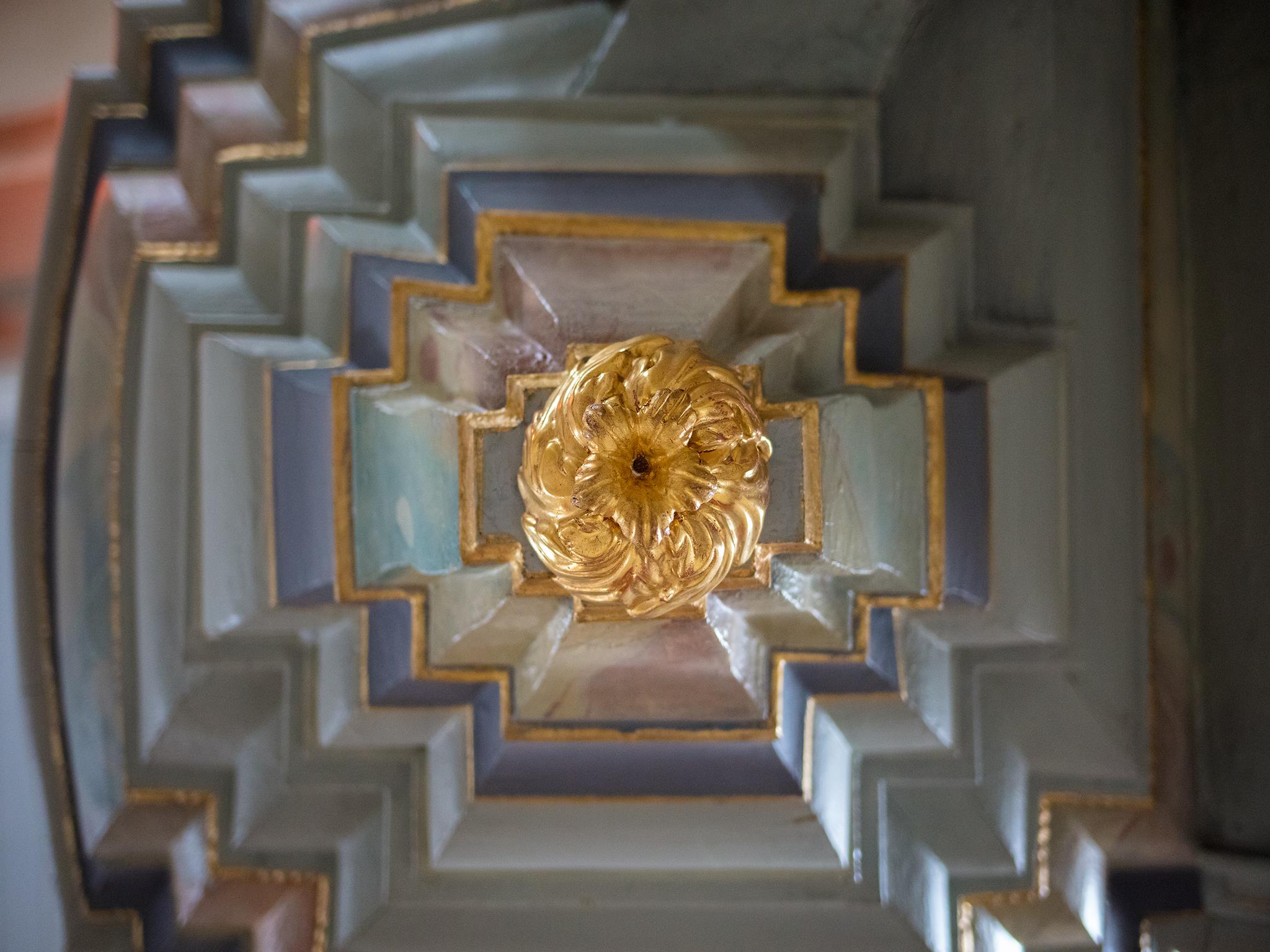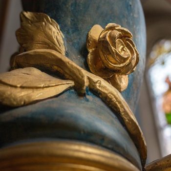 Um 1700 wurde die bekrönte Kanzel geschaffen und direkt gegenüber die Landpflegerloge mit direkten Zugang vom Neuen Schloss, genauso der Taufstein aus Sandstein. Die große Taufschale aus Zinn mit den Stifterdaten hat einen Durchmesser von 80 cm. Durch den Aufbau des Altars mit dem großen Kreuz strömt das Licht entgegen, darüber leuchtet golden der Strahlenkranz, in seiner Mitte der hebräische Name Gottes „Jahwe“.