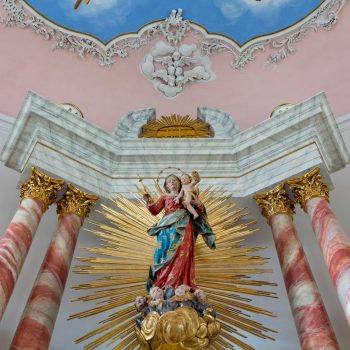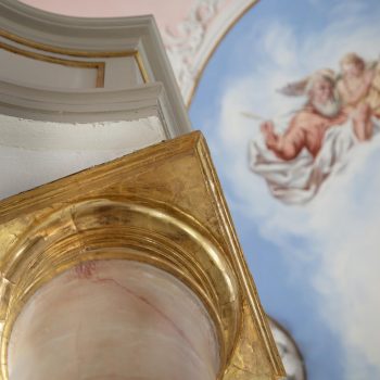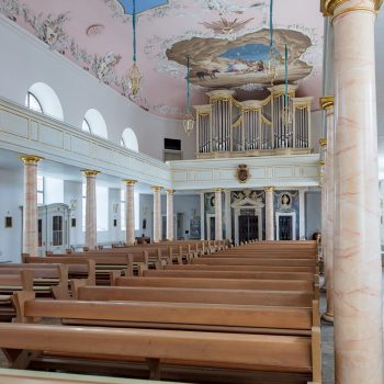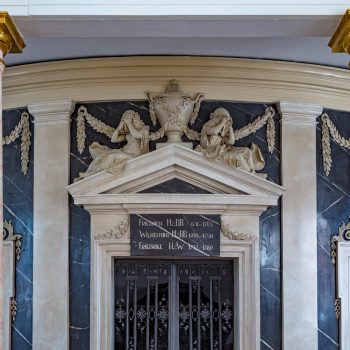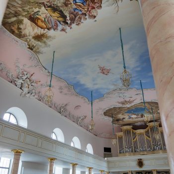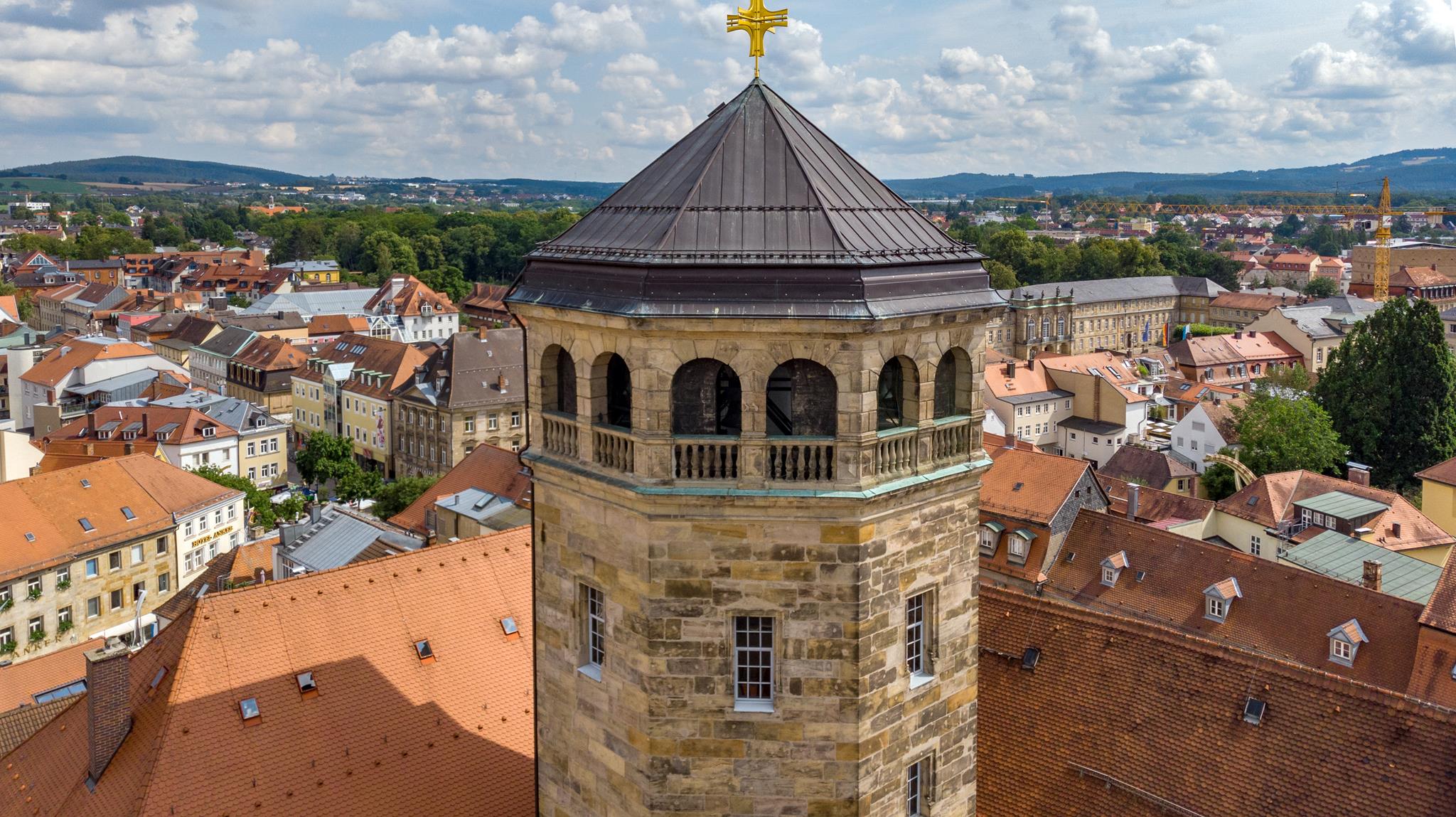 Von der Terrasse der Schlosskirche mit der Büste der kunstsinnigen Markgräfin Wilhelmine geht der Blick hinüber zum Weltkulturerbe Markgräfliches Opernhaus. Die gleichen Architekten und Künstler waren hier tätig, als Markgraf Friedrich und seine Ehefrau für die Hofgemeinde eine neue Kirche im „Alten Schloss“ bauen ließ. Die alte Kapelle aus dem Jahr 1668 war mit dem ganzen Gebäude niedergebrannt. Man sagt, die Fürsten waren zumindest nicht böse darüber. Der Neubau bot auch Platz für eine repräsentative Grablege. Als im Jahr 1791 die Herrschaft an Preußen überging, wurde das Gotteshaus als Gernisonskirche genutzt, während der französischen Besetzung als Waffenlager. 1810, nach dem Anschluss des Markgraftums an Bayern, übereignete der bayerische König die Kirche an die katholische Gemeinde. So ist die Schlosskirche heute die einzige katholische Markgrafenkirche.